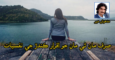 پنهنجي پاڻ کي آڇيل وقتي سک جي انهن ٿڙڪندڙ لمحن ۾ هن پاڻ ۾ ٿوري ئي سهي هڪ سگهه ايندي محسوس ڪئي. پروين کي فنا پائي سک جي اها ڪوڙي سگهه پنهنجو پاڻ مٿي اڀري من جي سمند کي ماٺو ڪندي وئي جنهن ۾ ٿورو اڳ خوابن جي آگبوٽن کي باهه لڳي هئي.