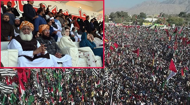 ڪوئيٽا ۾ پي ڊي ايم پاران ڀرپور عوامي طاقت جو مظاهرو، حڪومت کان مستعفي ٿيڻ جو مطالبو