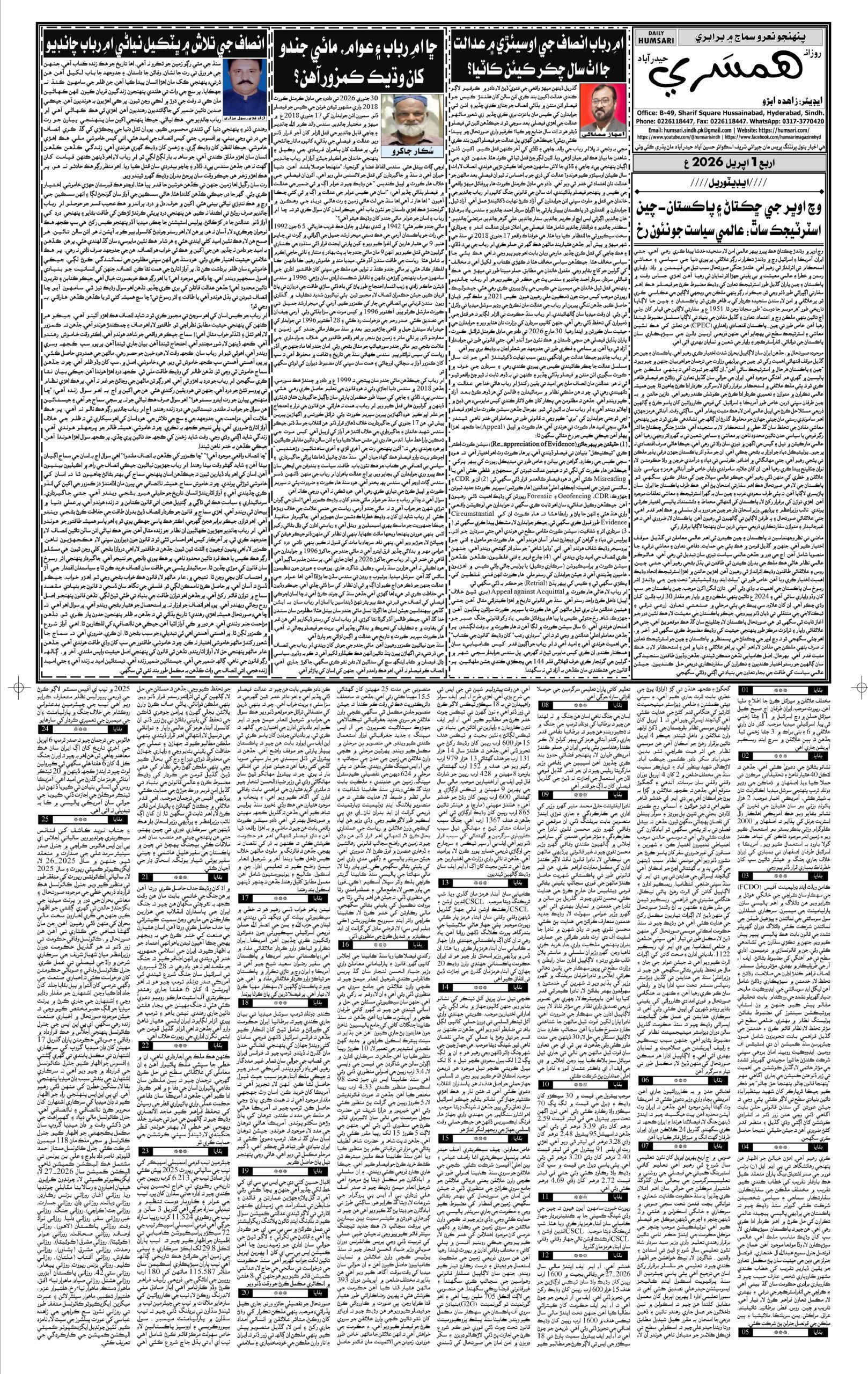 Monthly Humsari is the leading Sindhi Magazine that is read generally in Sindh, all over Pakistan and particularly worldwide.