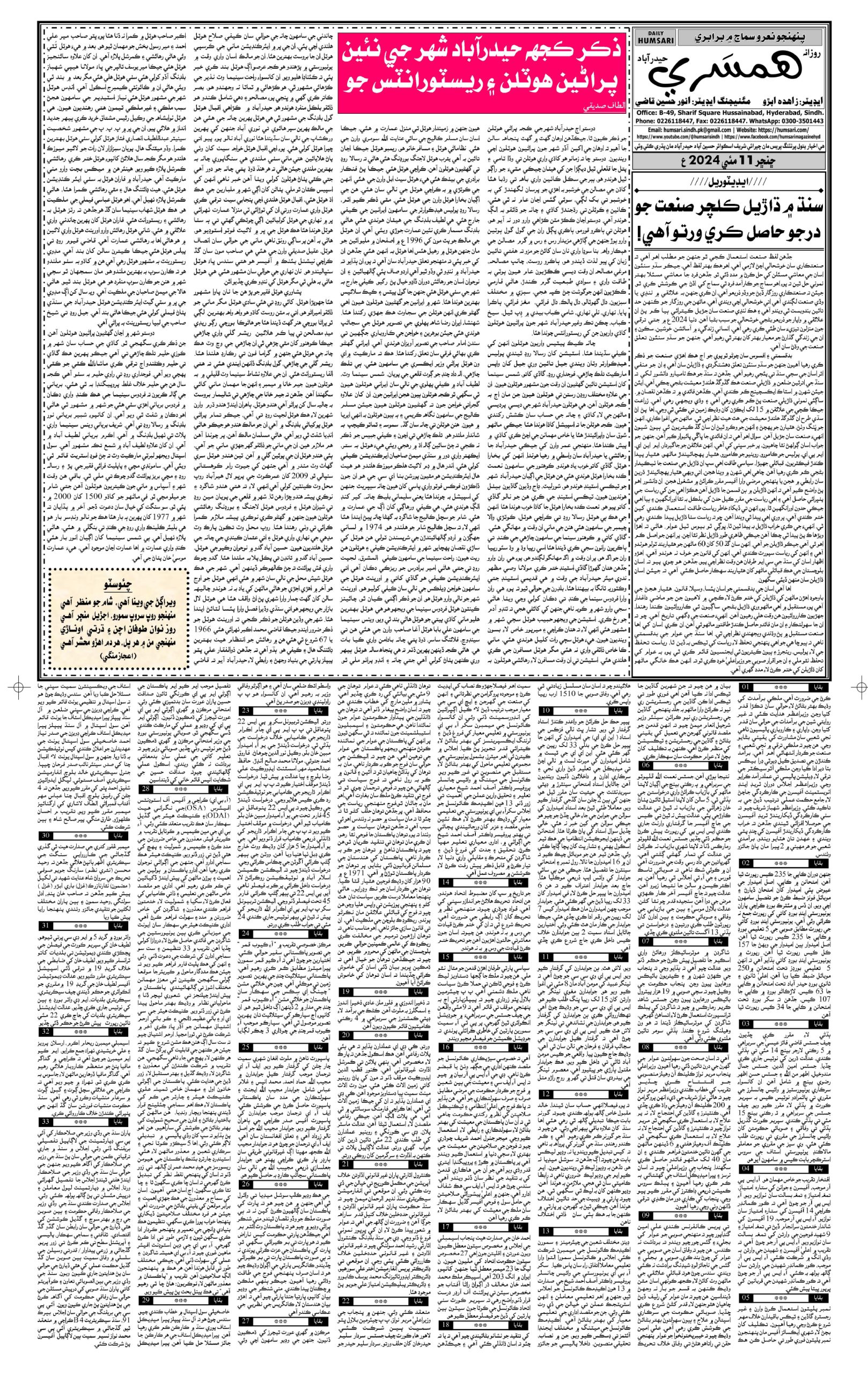Monthly Humsari is the leading Sindhi Magazine that is read generally in Sindh, all over Pakistan and particularly worldwide.