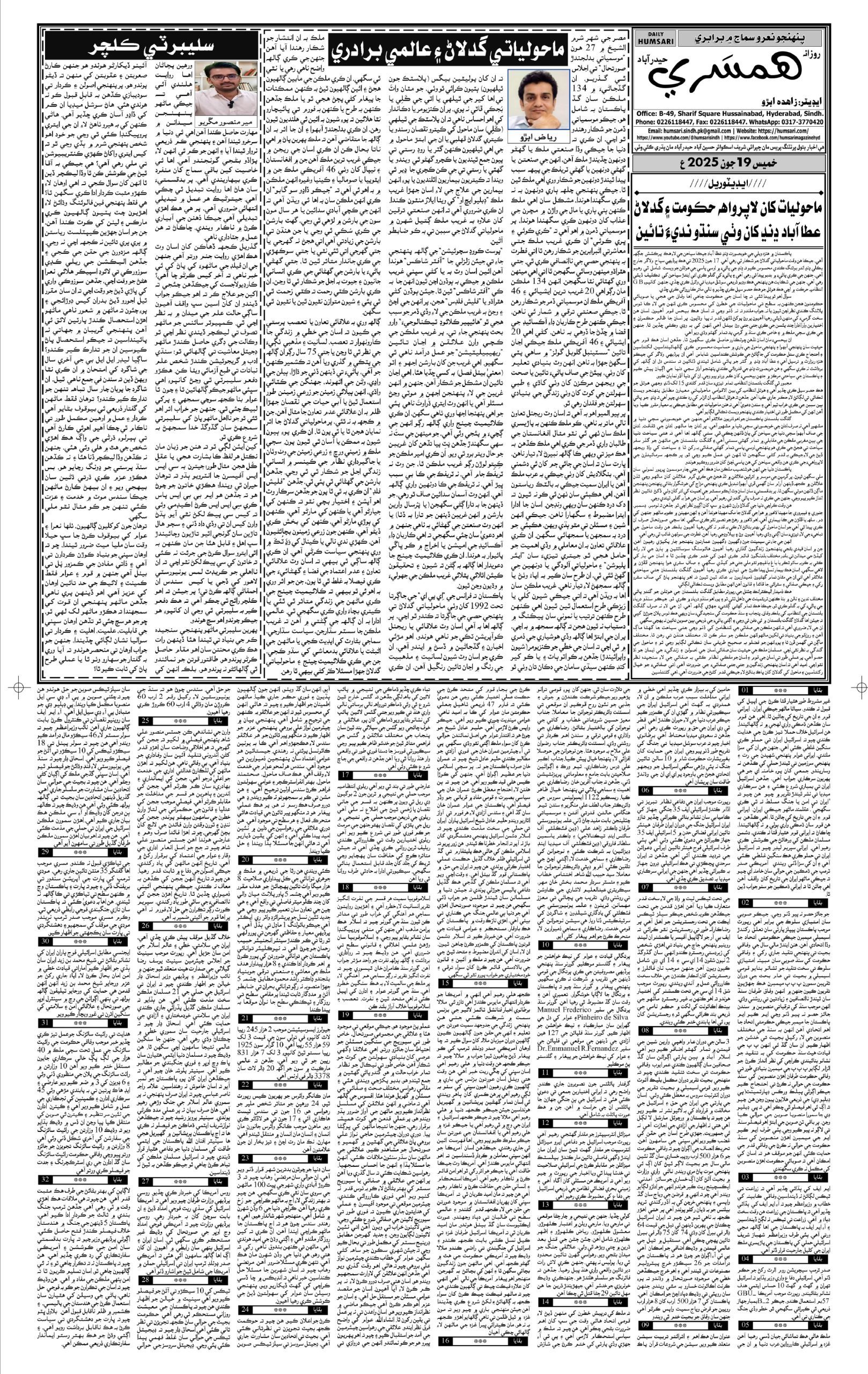 Monthly Humsari is the leading Sindhi Magazine that is read generally in Sindh, all over Pakistan and particularly worldwide.