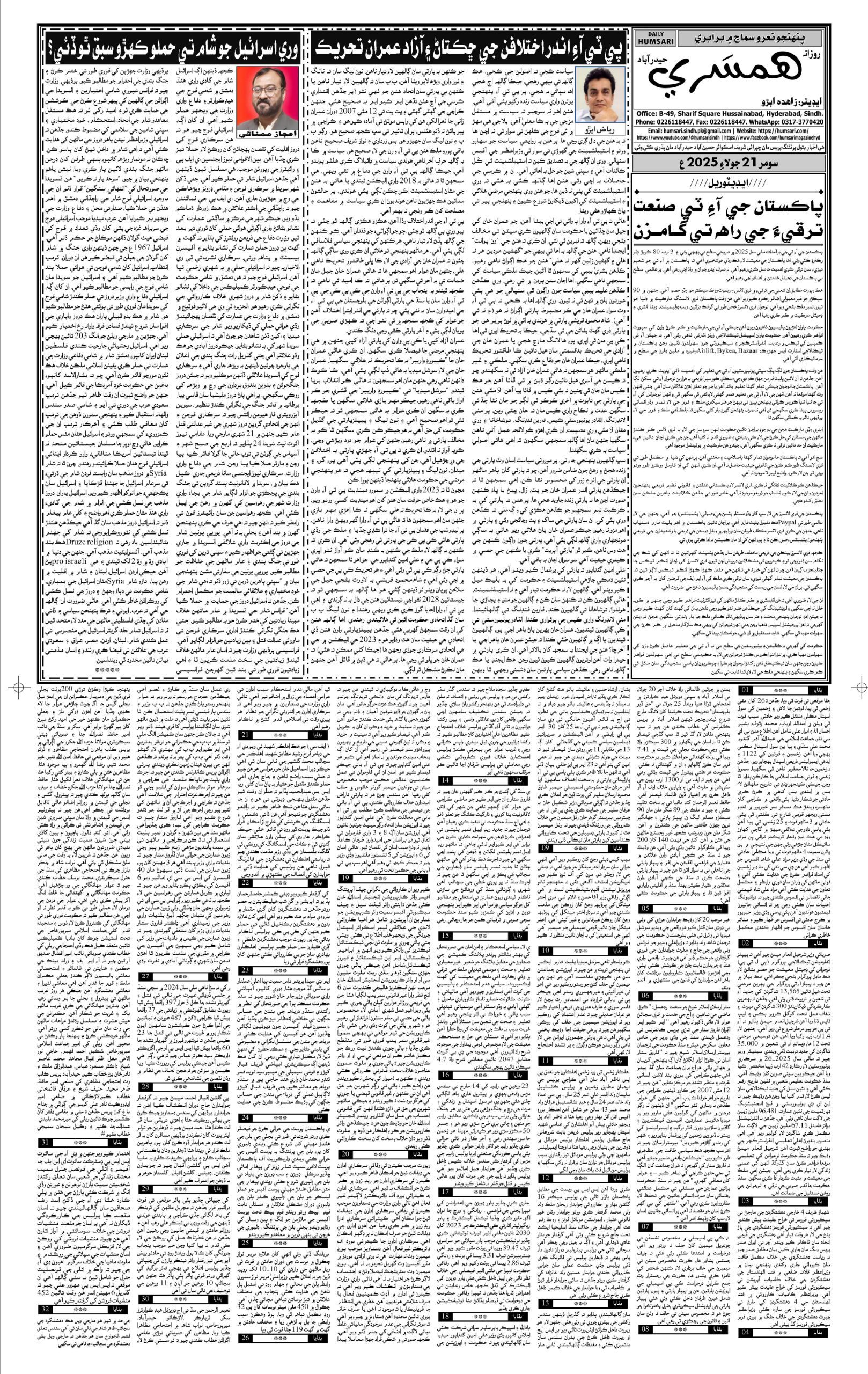 Monthly Humsari is the leading Sindhi Magazine that is read generally in Sindh, all over Pakistan and particularly worldwide.