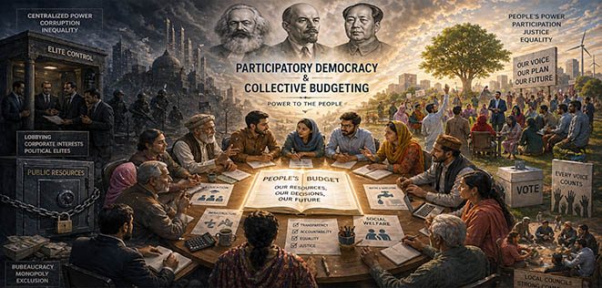 گڏيل جمهوريت ۽ گڏيل بجيٽ جون پاڙون انهيءَ ڪشادي تنقيدي روايت ۾ کتل آهن، جنهن کي ڪارل مارڪس سان منسوب ڪيو ويندو آهي. جيتوڻيڪ مارڪس گڏيل بجيٽ سازي جو ڪو باقاعده ماڊل پيش نه ڪيو، پر ان جي بورزوا سياست تي تنقيد اهو چٽو ڪري ٿي ته طاقت جا موجوده نظام ڪهڙي ريت محنت ڪش طبقي کي حقيقي فيصلي سازي کان خارج رکن ٿا. بي معنيٰ گڏيل جمهوريت لاءِ هڪ مضبوط ۽ موثر مقامي حڪومتي نظام ضروري آهي. ان تصور کي مختلف انداز ۾ Vladimir Lenin ۽ Mao Zedong به اڳتي وڌايو، جن هن سياسي تبديلي ۾ عوامي شرڪت ۽ مقامي تنظيم جي اهميت تي زور ڏنو. ڪنهن به معاشري ۾ تيز رفتار يا حقيقي تبديلي ان وقت تائين ممڪن ناهي، جيستائين اهو هڪ مضبوط طرز حڪمراني تي بيٺل نه هجي. ان بنياد کان بنا جمهوريت صرف هڪ خالي کل بڻجي ڪري رهجي وڃي ٿي. حقيقت ۾ جيڪڏهن مقامي سطح تي گڏيل ادارا موجود نه هجن ته جمهوريت سطحي ۽ غير موثر ٿي وڃي ٿي. مارڪس جي مطابق بورزوا سياسي نظام اڪثر محنت ڪش طبقي جي شرڪت کي مقامي، صوبائي ۽ قومي سطحن تي محدود ڪري ڇڏين ٿا. اهڙن نظامن ۾ اصل فيصلا سازي اميرن ۽ لابنگ گروپن جي هٿ ۾ هوندي آهي. جڏهن ته محنت ڪش طبقو هڪ تماشائي جي حيثيت اختيار ڪري وٺندو آهي. ان سان گڏوگڏ، وچولي طبقي جا ڪجھه حصا بحيثيت ثالث ڪم ڪندي اڪثر اميرن ۽ صنعتي مفادن سان گڏ هم آهنگ ٿي وڃن ٿا، جيئن ته يونائيٽيڊ اسٽيٽ ۽ ڀارت جهڙن ملڪن ۾ ڏسي سگهجي ٿو.